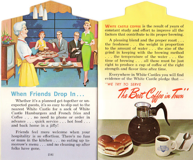 I found this while cleaning the basement. Why have I hung on to this little White Castle thing for so many years? I don't even like White Castle, but they make some tempting arguments. "We try to serve the best coffee in town."